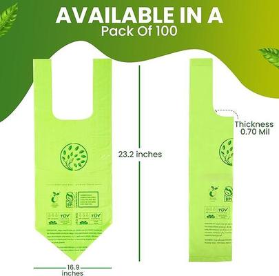 Unsere kompostierbaren Müllbeutel sind ungiftig, harmlos, zertifiziert biologisch abbaubar und kompostierbar nach weltweiten Standards: EN13432, ASTM D6400, AS4736 & AS5810. Was uns helfen wird, die Umweltverschmutzung der Erde zu reduzieren!